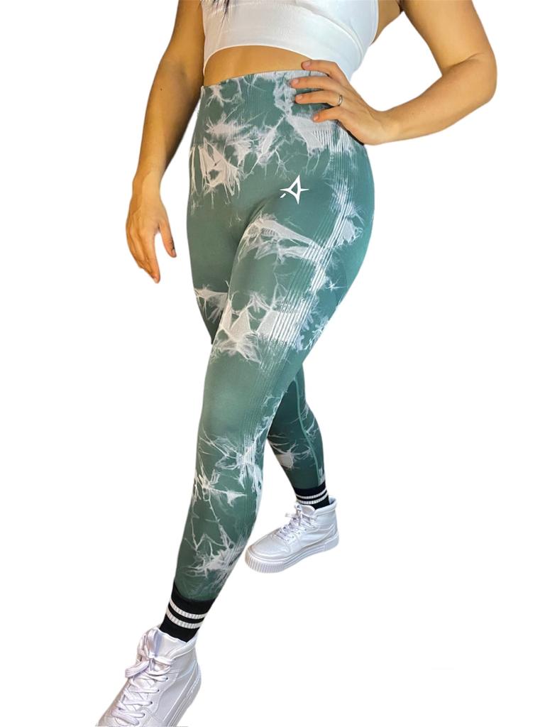 No pierdas la oportunidad de lucir y sentirte increíble con nuestras leggings sin costuras de cintura alta, con frunce efecto push up y diseño tie dye.
